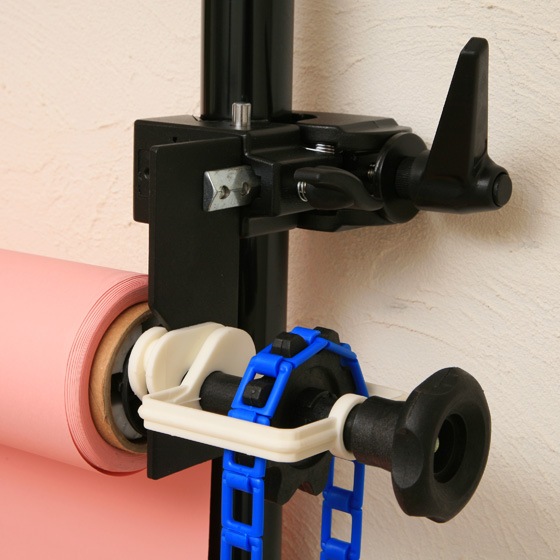 オートポールにロール紙を装着する際に用います。 付属のプロクランプにエキスパンを装着するフックが付属しています。手動チェーンでロールペーパー1本を昇降させる機材です。プロクランプは、パイプ径60mmまでのポールに装着できます。