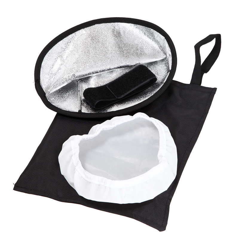 直径20cm、お手軽な折り畳み式円形ソフトボックスです。クリップオンストロボにベロクロテープで装着します。円形ならではの自然なキャッチライトと素直なグラデーションが持ち味です。