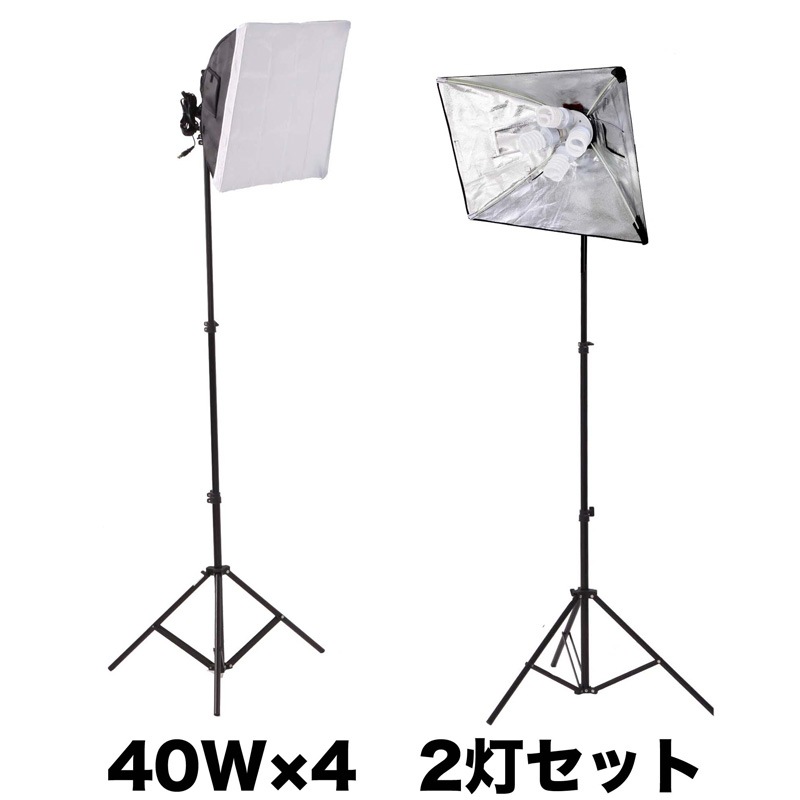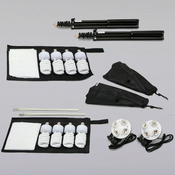 28wスパイラル蛍光管を、40wに変更したスペシャルバージョン。1灯あたり160wの明るいライトソースが2セット揃っています。人物やアパレル関連商品など、大きな被写体を撮影される方におすすめです。当社カメラマンがプロのモデルさんを撮影するときにも使用していました。
