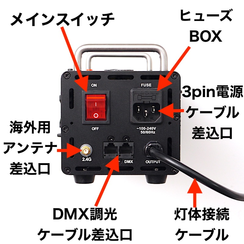 この製品はDMX入力端子があり、DMXコントローラーを使用することにより有線で遠隔操作が可能です。