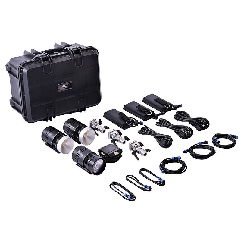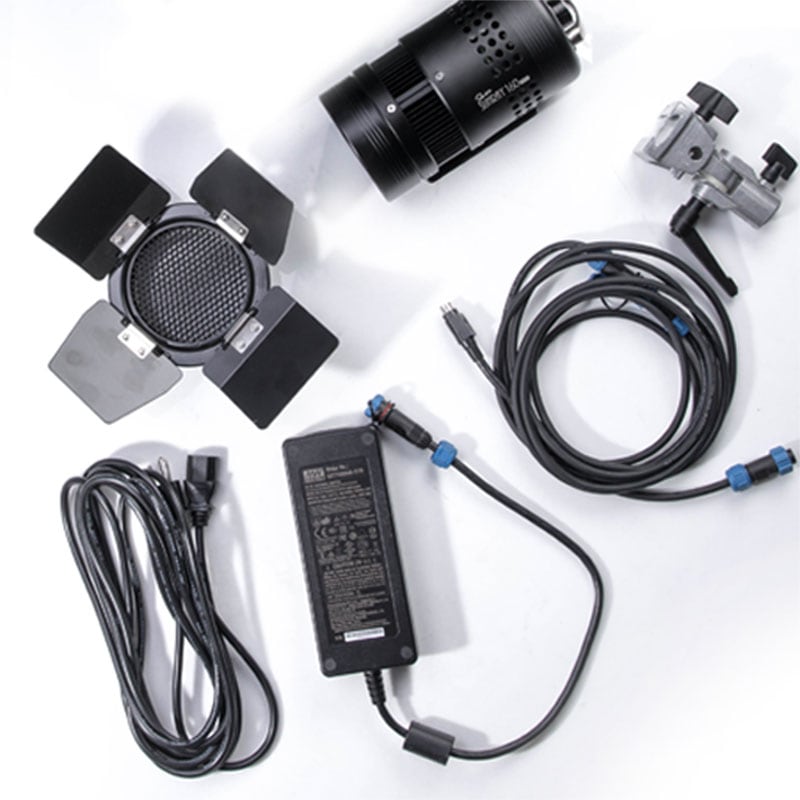 専用広角アダプター×2 、バーンドア×1、ライトスタンド3本が付属!すべて収納される便利な専用ケース付きです。