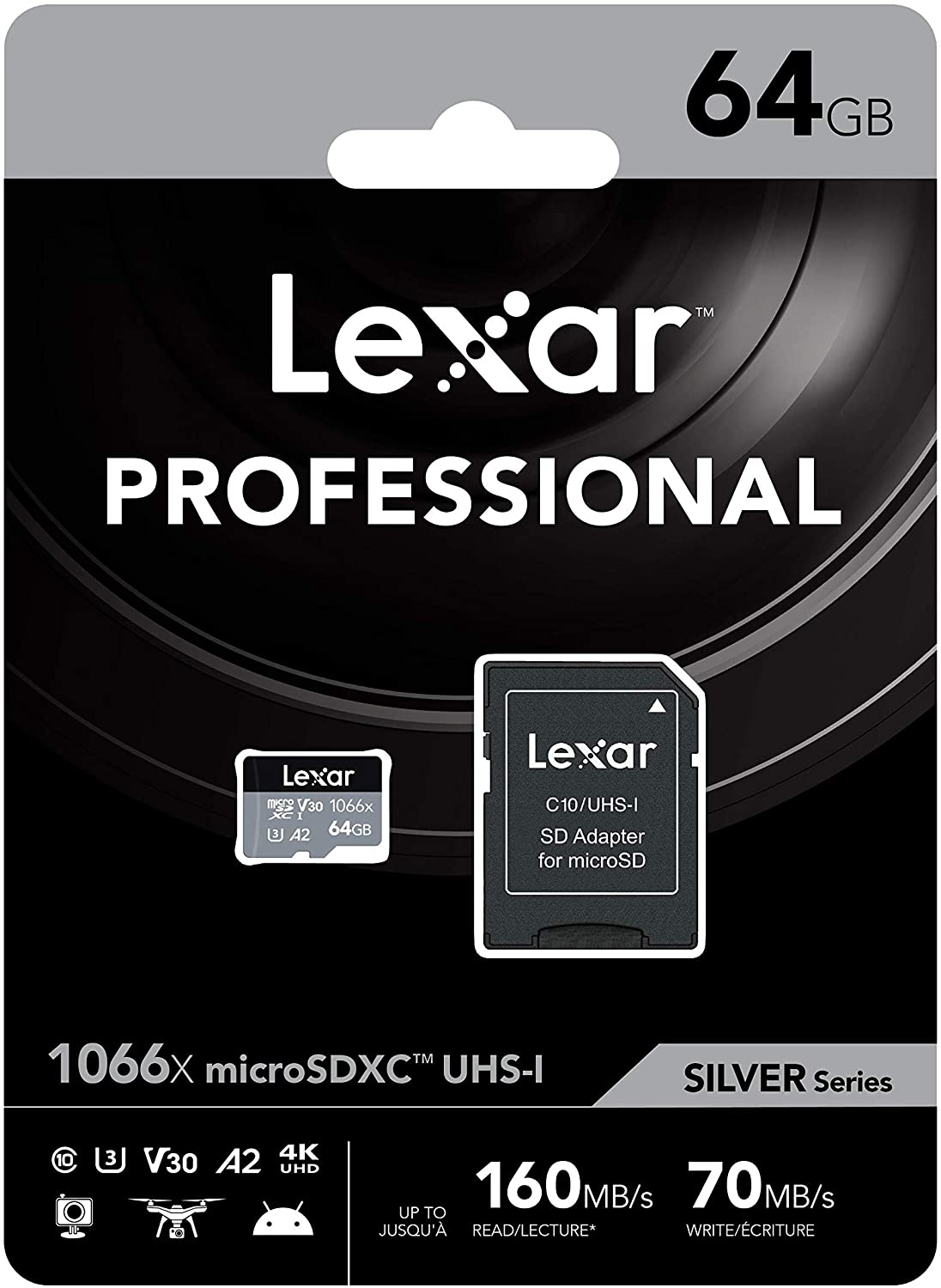 Lexar Professional 1066x microSDXC 64GB UHS-I カード SILVER