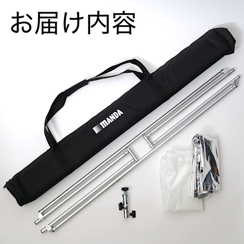 お手持ちのライトスタンドがあれば自立型のリフレクター(110x110cm)が実現します。