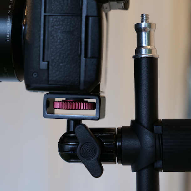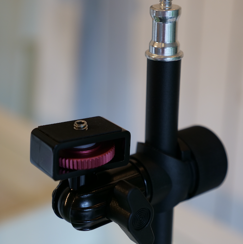 こんなスタンド欲しかった!テーブルやデスクに挟み込めて場所を取らないカメラスタンドです。トップ部に16㎜オスダボがついたポールに挟み込む雲台が付属しており、照明をつけて使うことも可能です。雲台は32㎝のポール上で上下にスライドして動かすことが可能です。耐荷重1.5キロのしっかりした雲台なので、重いレンズをつけた一眼もガッシリと止まります。